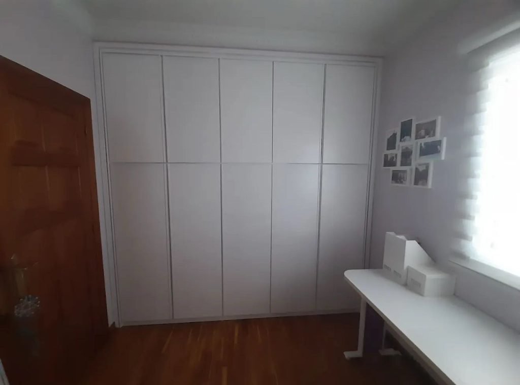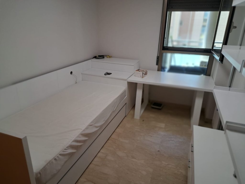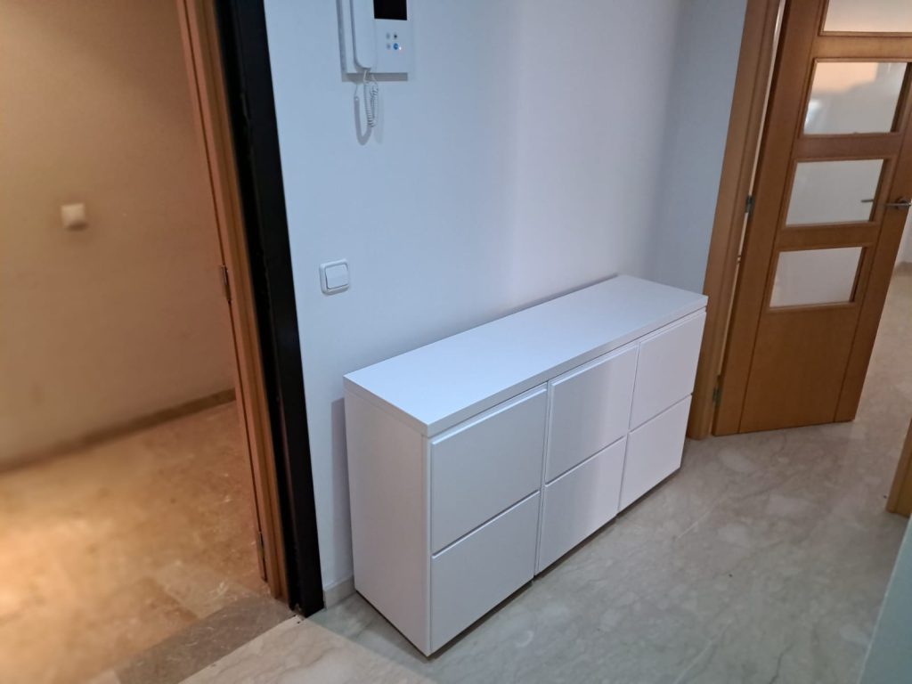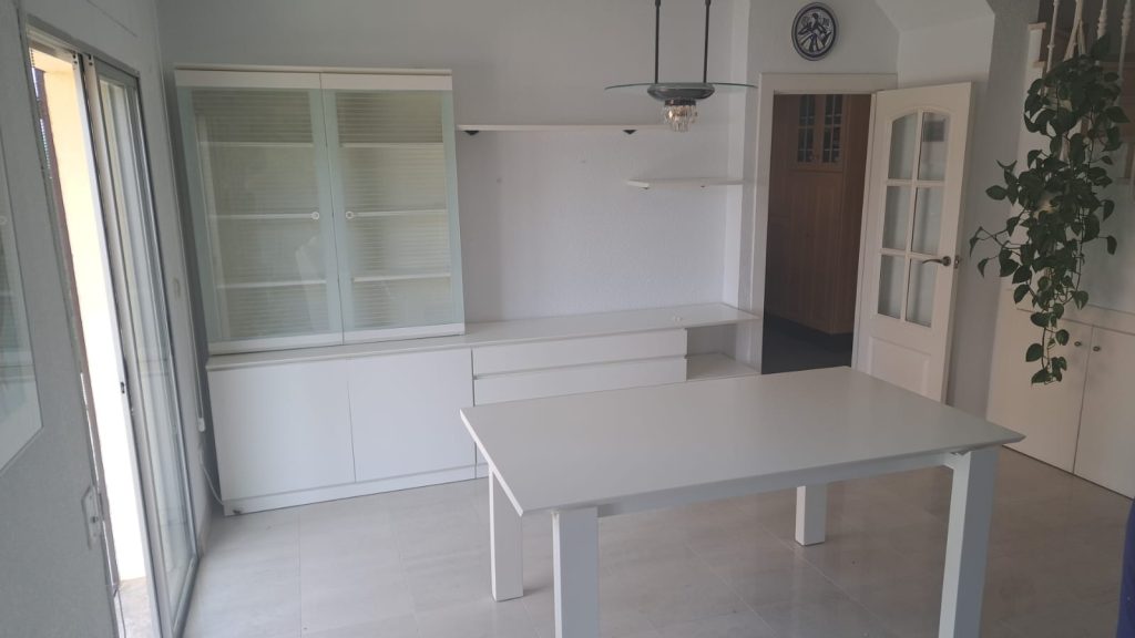 La mesa y las sillas originales, con su acabado en madera rojiza brillante y tapizado azul, tenían un estilo clásico que ya no encajaba con la decoración actual. Hemos renovado totalmente el conjunto manteniendo su excelente calidad y estructura original. La mesa se barnizó en un tono madera clara mate, resaltando la preciosa incrustación central […]